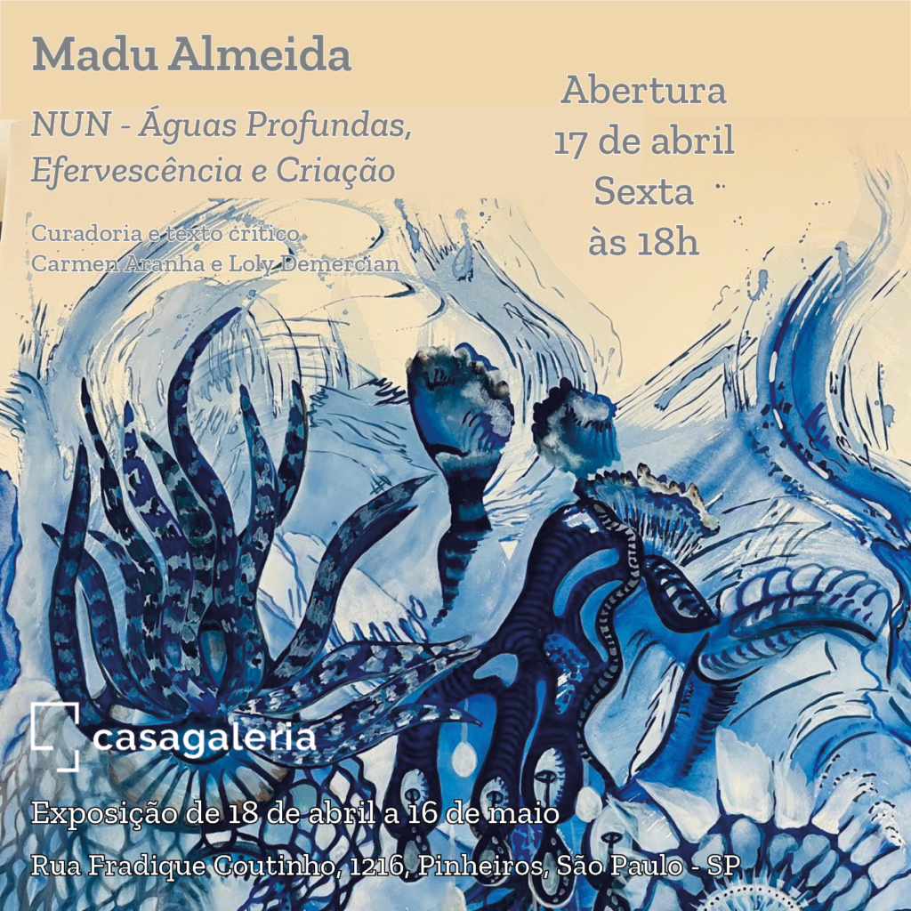 Na exposição “Nun, Águas Profundas, Efervescência e Criação”, Madu Almeida nos conduz a um campo onde a experiência antecede o nome, onde ver é ainda tocar o indizível. A abertura, em 17 de abril de 2026, na Casagaleria, não se apresenta como um conjunto de obras, mas como uma travessia: um convite a habitar o instante em sua densidade sensível.