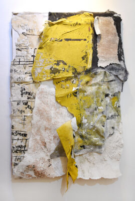 Azeite De Leos apresenta os trabalhos da série ”Pella“, de 2019 e 2020, consubstanciados na metáfora de escavações retiradas de uma cidade que se modifica e deixa, na sua percepção, camadas depositadas em telas que procuram apreender os instantes da memória.